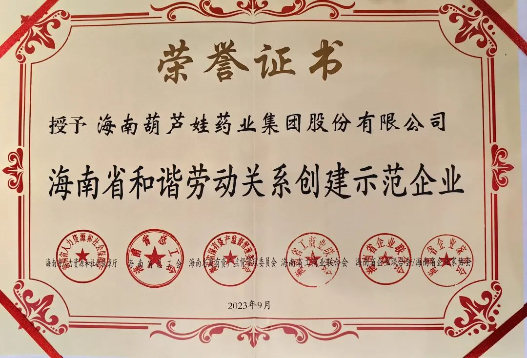 公海彩船药业集团获评“海南省和谐劳动关系创建示范企业”